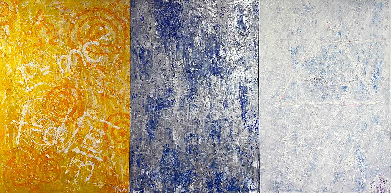 ‘E = mc² Trilogy’. ©Felix Zaska 2021. E = mc² series. (Revelation 10:6)